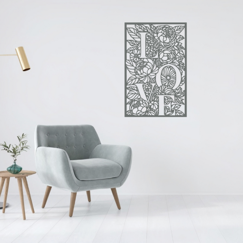 Aporta un ambiente cálido y natural a tu interior con esta decoración de pared de madera cortada a láser con flores y la palabra LOVE. Su diseño refinado y la madera natural convierten este panel decorativo en un verdadero punto focal para cualquier espacio.